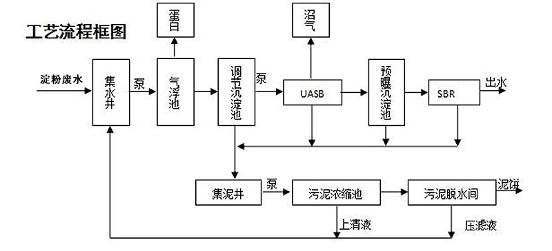 淀粉厂的废水统一的特点是量大,涉及面广,需要多套污水处理设备环环相扣,联合处理才能达标,因为淀粉废水主要污染物有悬浮物(SS)、化学需氧量(COD)、氨氮(NH3-N)、总氮(TN)和总磷(TP),以玉米、马铃薯、小麦、大米等农产品为原料生产淀粉或淀粉深加工产品(淀粉糖、葡萄糖、淀粉衍生物等)的工业产生的废水,一般都属于高浓度有机废水,是造成的主要污染源之一,处理这类高浓度的废水,造价陈本高,污水经由调节池隔油调节池提升进入混凝加絮凝装置,依次投加PAC和PAM。充分进行混凝、絮凝反应。经混凝、絮凝反应好后的废水进入组合气浮,除去大部分油和SS,出水基本达标,经过一体化污水处理设备,去除水中的COD、BOD、氨氮、PH值等,终一道工序加二氧化氯进行消毒,出水达标排放。